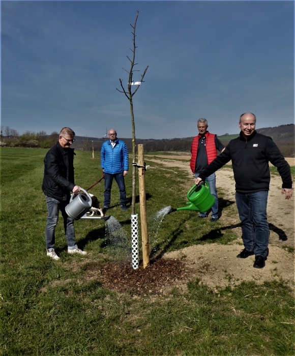 gestellt wird. Die Streuobstbäume wurden symbolisch von Raimund Bogler, Jörg Schüller
